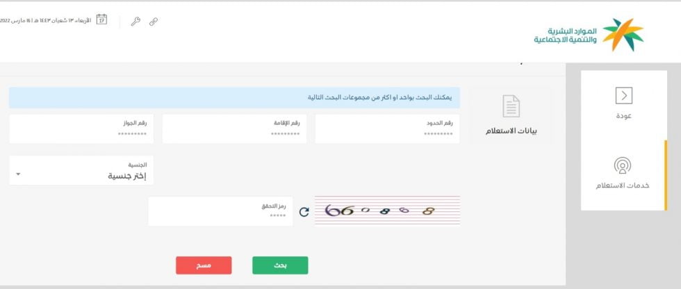 আপনার ইকামা নম্বর, পাসপোর্ট নম্বর বা সীমান্ত নম্বর ইনপুট করুন