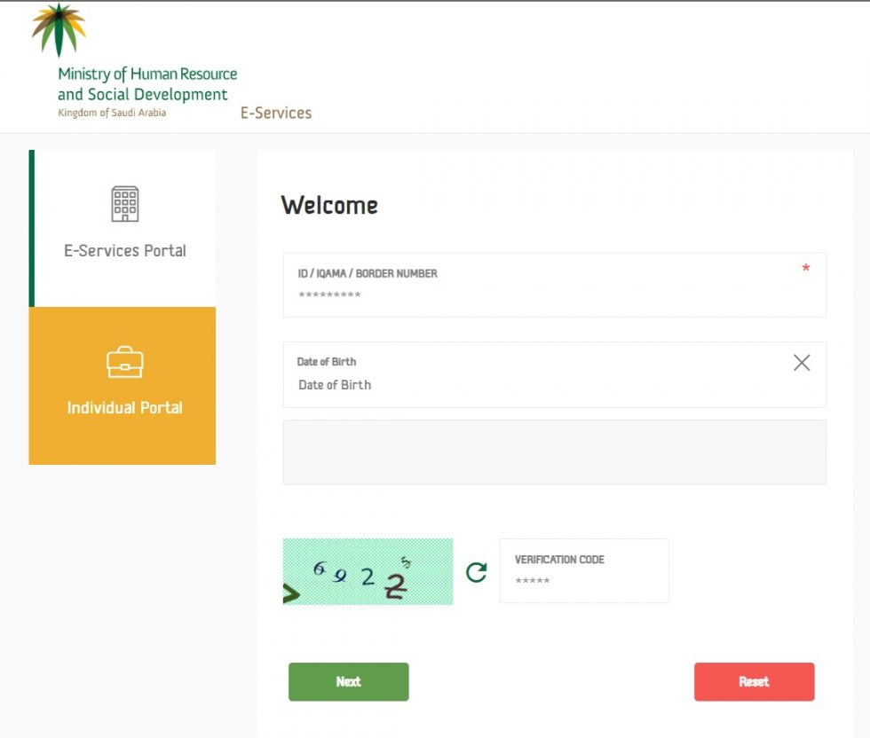 আপনি আপনার বর্ডার নম্বর ব্যবহার করে আপনার ইকামা স্ট্যাটাসও চেক করতে পারেন। আপনাকে প্রথমে শ্রম মন্ত্রণালয়ের ইকামা পোর্টালে যেতে হবে ।